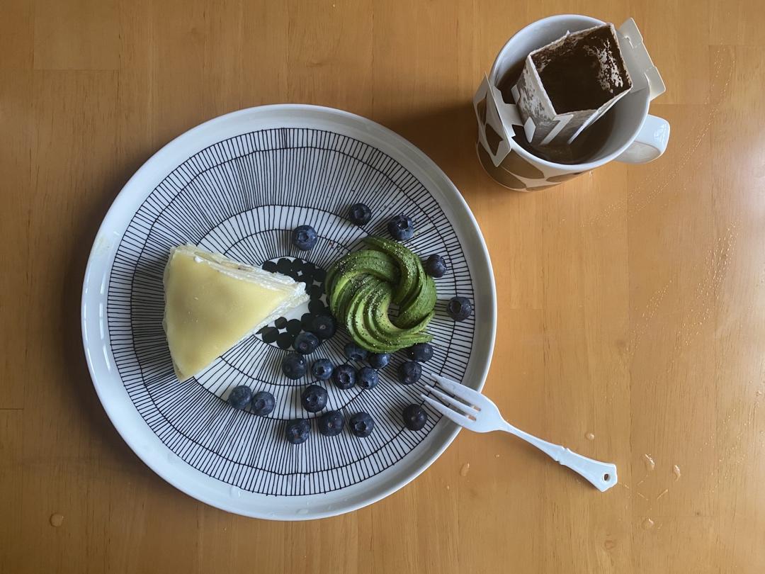 小满餐桌 猕猴桃千层+牛油果🥑+蓝莓+咖啡☕️
