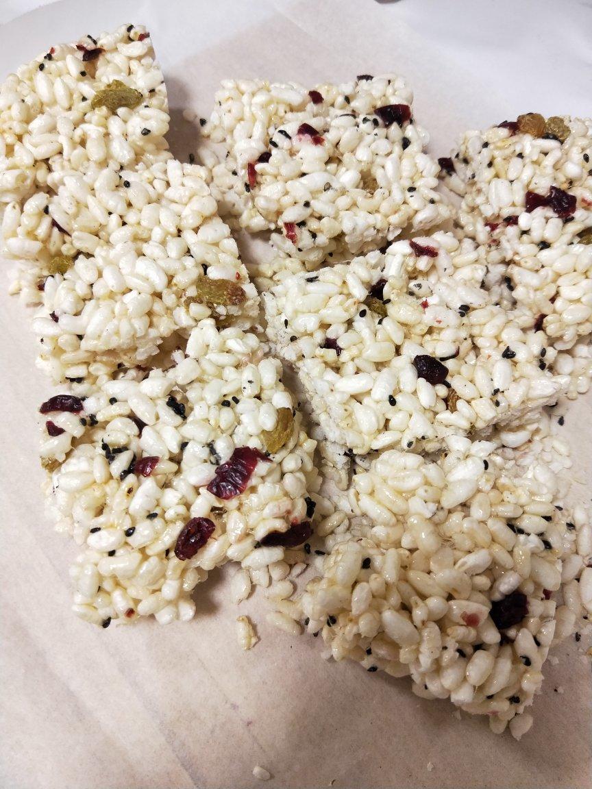 疾风知劲草0305 做过 米花糖 为了消耗二月二打的米花糖,专门买的麦芽糖做这个,第一次很成功,因为严格按方子称的,麦芽糖太难称了,第二次嫌称重麻烦,大概放了些,结果失败的一塌糊涂,米花倒进去湿了,粘不到一块 2020-03-21