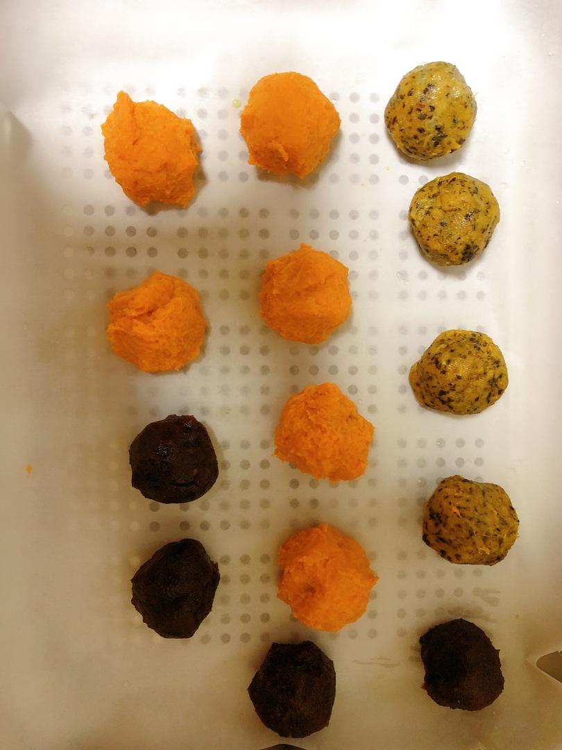 做了两份的量,蛋黄肉松,红薯,豆沙,三种馅儿