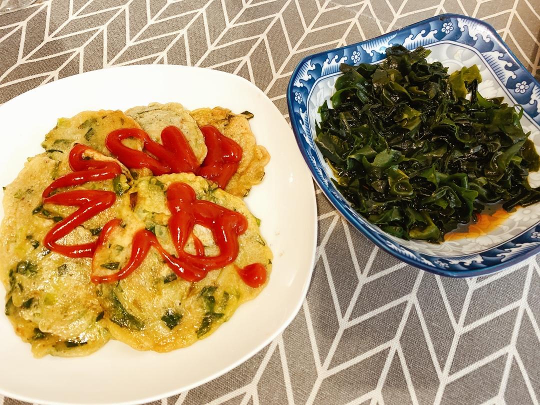 蔬菜蛋饼+凉拌裙带菜