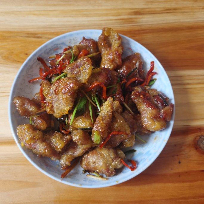 被韩综种草的锅包肉,最后酱汁不知道比例,不知道调的对不对,但是真的挺好吃😋
