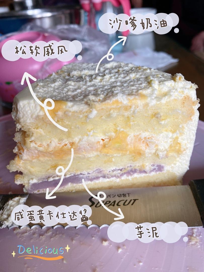 今天家里人一起切开吃了,我想说,吹爆它!!!这也太好吃了吧!美妙的组合!!都要求下次卡仕达和芋泥要双倍哈哈哈!赞!!