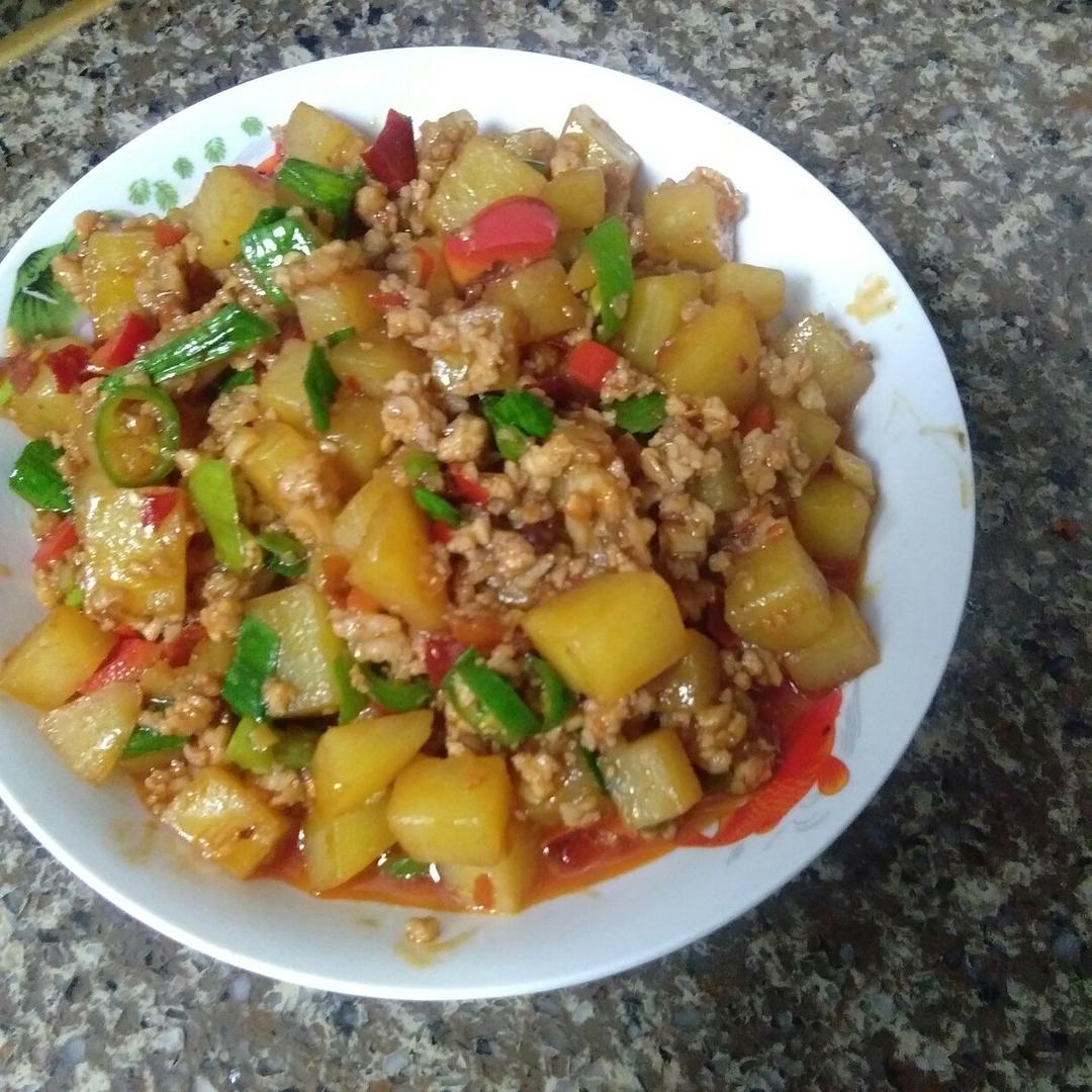 肉沫土豆丁,大人小孩都爱吃,也是网红菜,做起来简单,不过还是要注意酱要少放点哦,我就没放盐,只放酱和生抽,蚝油还是有一点点咸了哟。