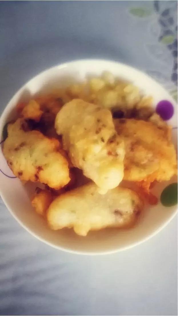 面粉125克,淀粉5克,水150克,盐2克,酵母2克,白糖5克,搅匀后发酵,淹好肉,然后炸。