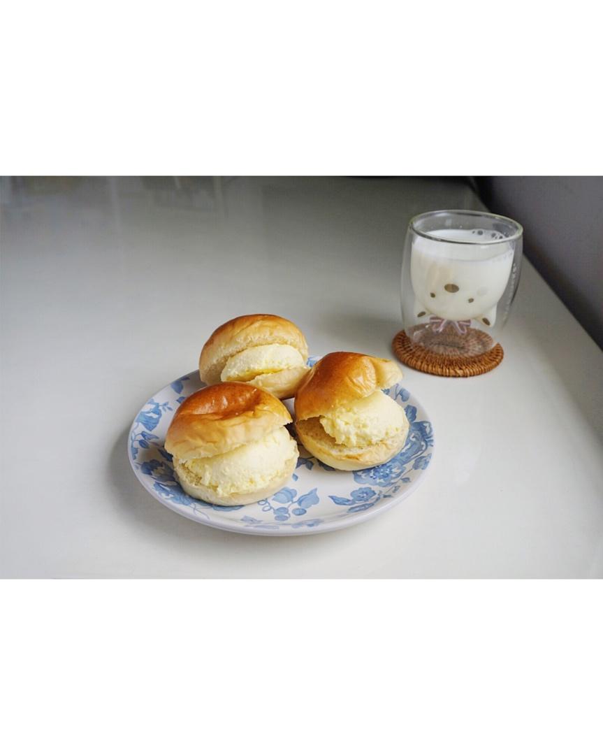 「烤布蕾餐包、牛奶」