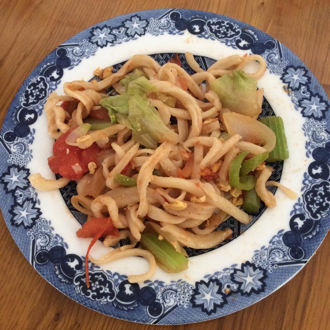 DianaK 做过 【小高姐】炒拉条子 记忆中西红柿汁裹着的那碗粗面条 有老母的参与的拉皮条的 味道不错,面条不好吃🤦♀️其实主要是面粉很奇怪,稀不啦叽的,和po主的完全不是一个质地#午餐•2020年4月19日# #失败败# 2020-04-19