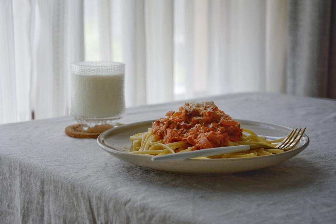 肉酱意面🍝and牛奶🥛