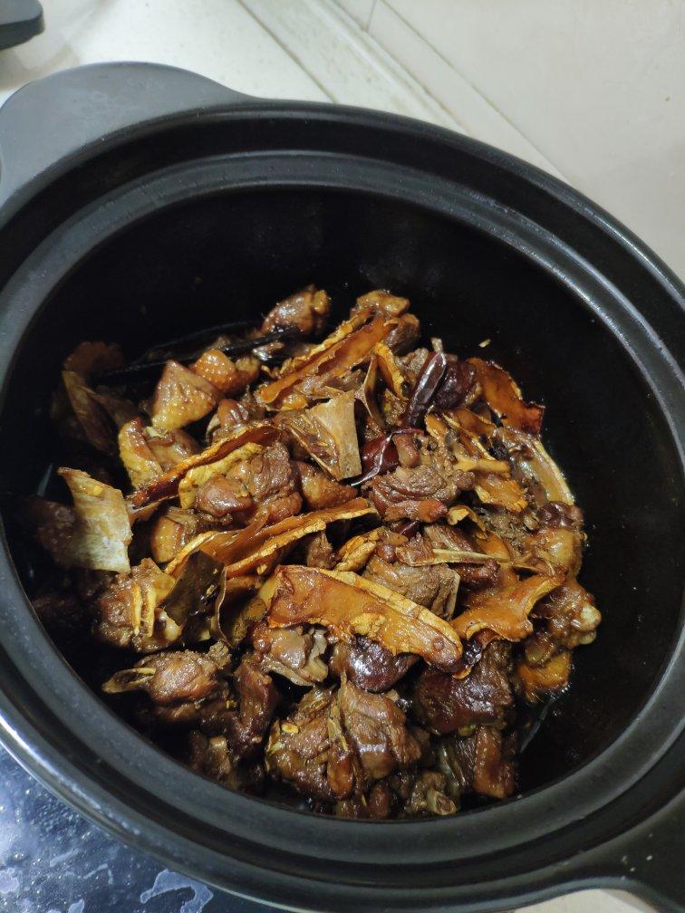 在炒锅里炒香了,然后把姜片铺满砂锅底部,有肥油的鸭肉放底部,其它放上面一层!!