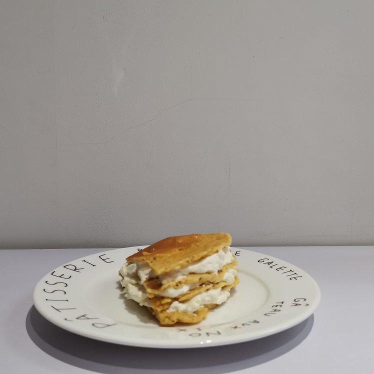 最小火煎两分钟边缘就脆到不行,离火也搞不定,太脆了,结果做成了可丽饼千层~