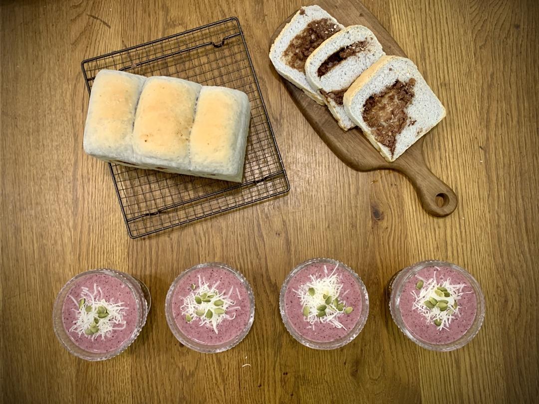 香蕉蓝莓果昔,红豆吐司与芭乐雪糕😋