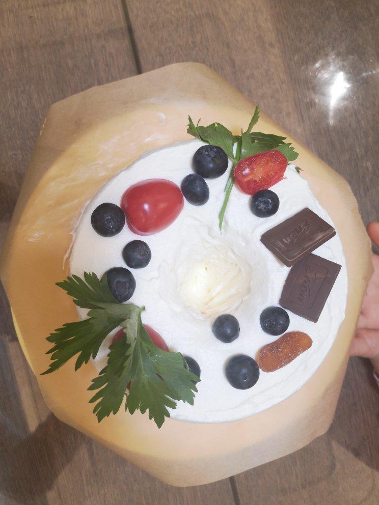 用芹菜当绿色点缀一下,奶油打发程度还是不好控制