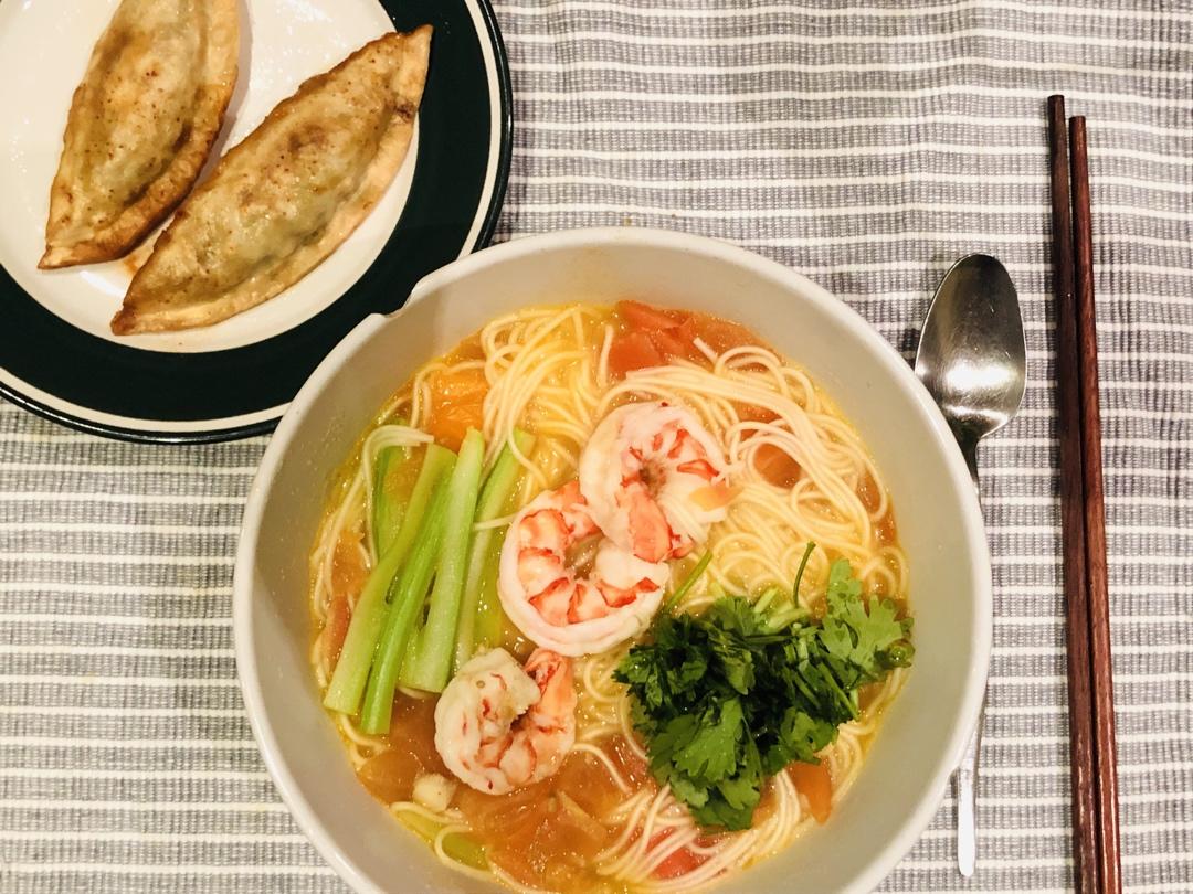 虾头熬了虾油 晚餐一晚热汤面最适合秋凉的夜晚了