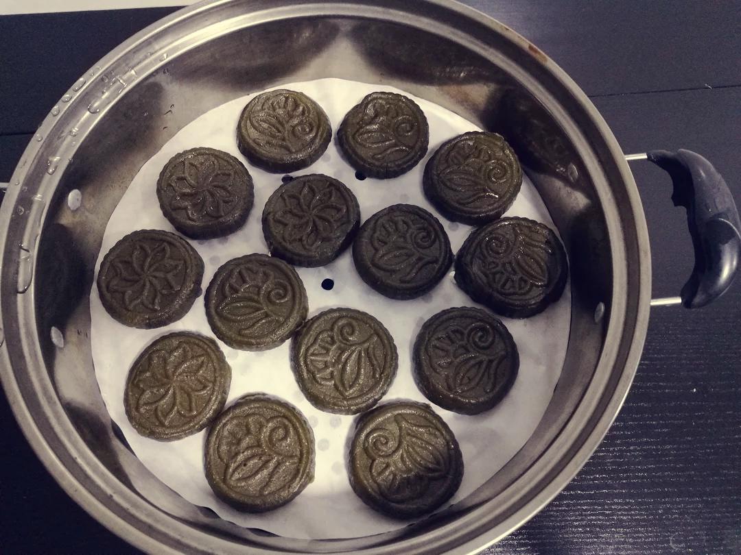 娃虾 做过 早餐•2020年5月11日 不粘锅放约30克花生油,放几块姜片加入锅翻炒,放入2块冰片糖煮,不停翻炒溶化后加入2碗热开水煮沸后倒入准备好栾樨粉不停地搅拌均匀,加入适量的花生油关火焖至20分钟左右出锅,搓揉擀面团约10分钟,表面光滑细腻,切成小丁约30克放进模型内成型(模型加少少油防粘),放蒸锅大火烧开后约20分钟出锅。#早餐•2020年5月11日# 2020-05-11