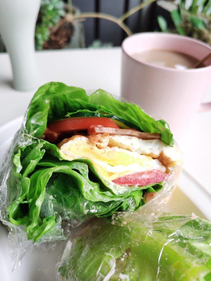 用了火腿肉,芝士片,煎鸡蛋2个,黄瓜,西红柿,生菜,低碳水高脂肪生酮减脂,最重要的是坚持。