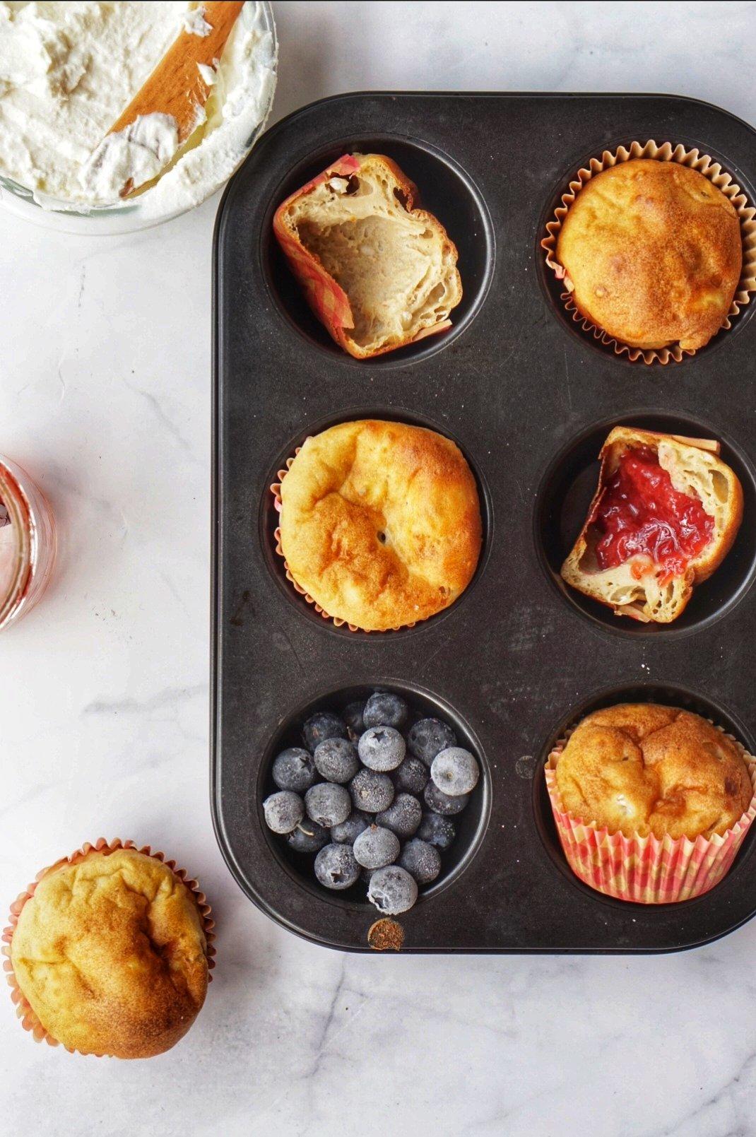 双人鱼火花石 做过 废弃酵种空心布丁 开始养天然酵种就开始为消耗废弃酵种发愁找了一堆消耗方子一个个来试反正最不缺的就是废弃酵种本来贪图方便用了马芬模结果纸撕不下来了下次乖乖模具抹油吧这次抹了奶油奶酪,草莓酱,青酱嗯 还不错😊#早餐•2020年5月15日# 2020-05-15