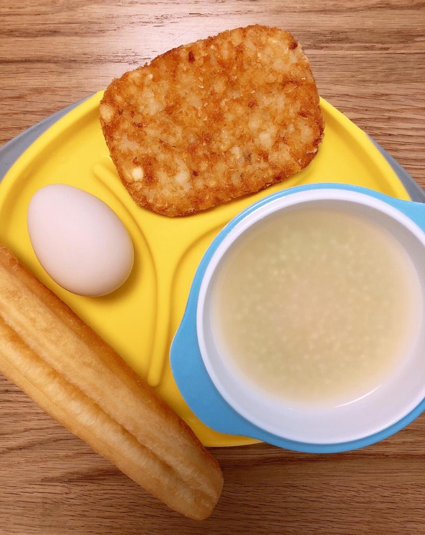 果果早餐·油条(KFC)、薯饼(KFC)、煮鸡蛋🥚、小米粥