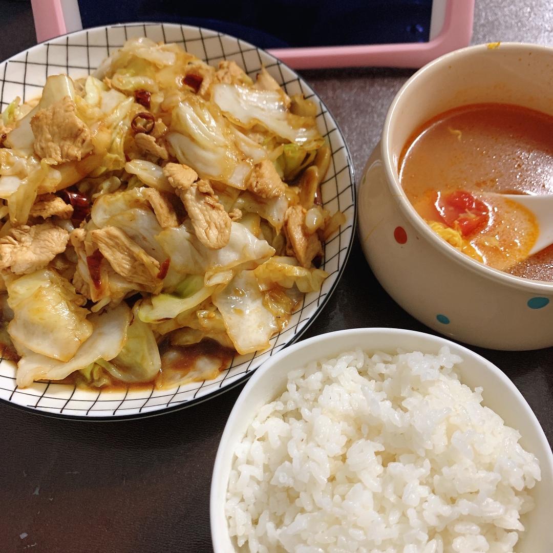 手撕包菜+西红柿鸡蛋汤