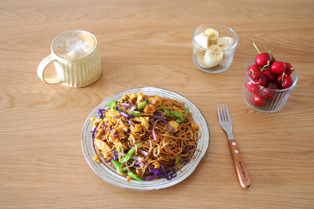 紫甘蓝青椒鸡蛋炒面