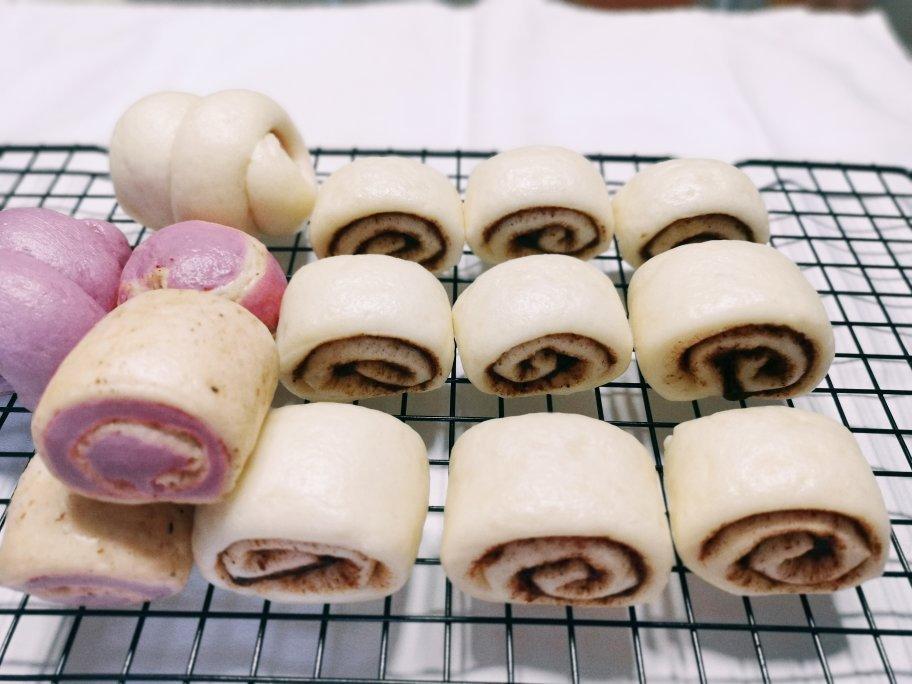 有馅儿(红豆沙、香肠)有色(紫薯)有型(如图)的馒头😋