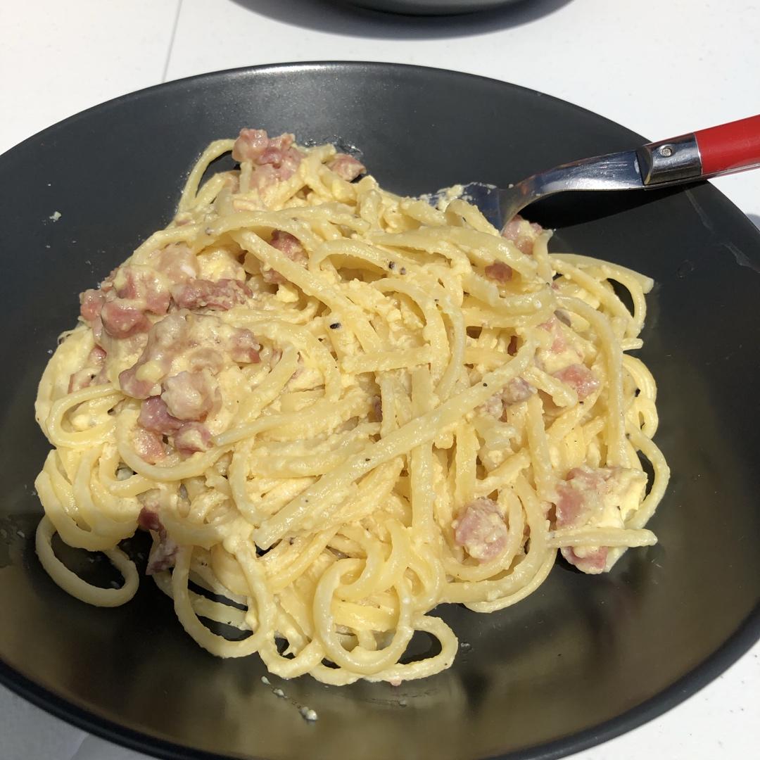 正宗的Carbonara才不放奶油呢 | 蛋黄酱三文鱼意面