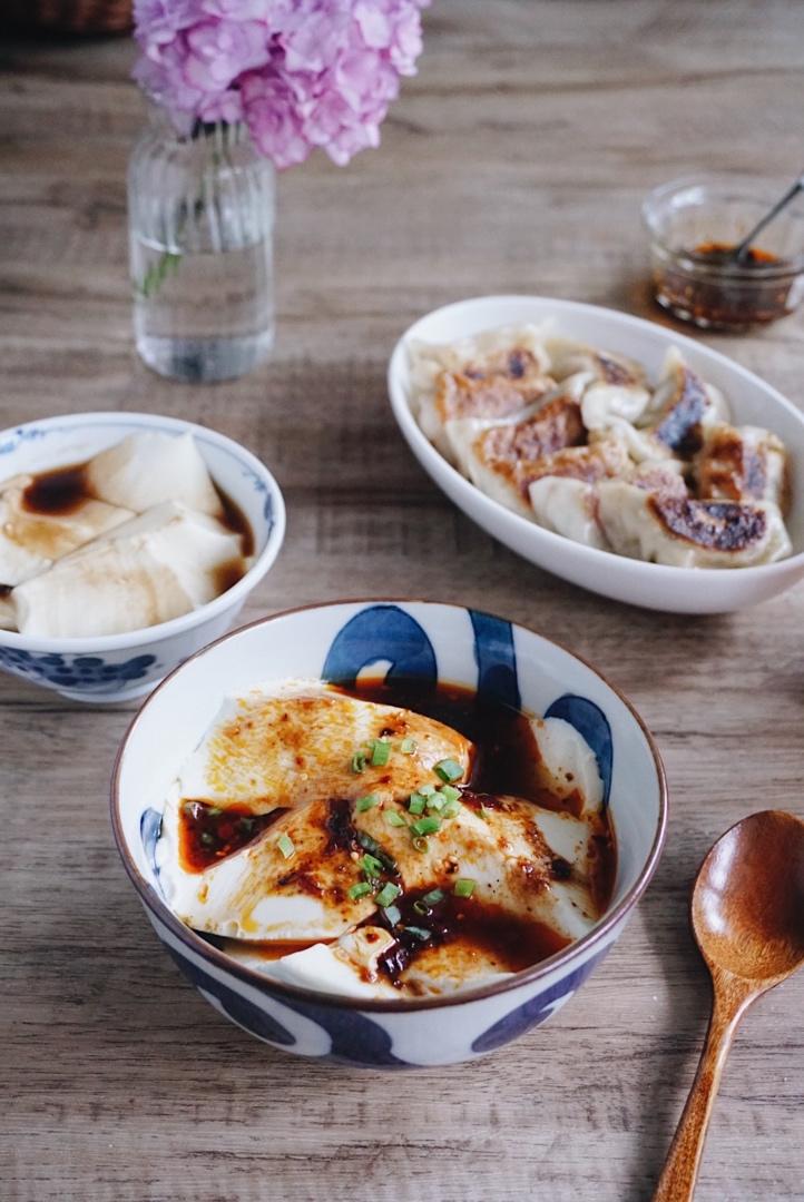 早安~豆花(闺女甜口.我是酸辣口)煎饺&橙汁
