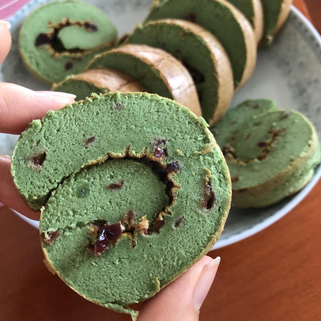 三个蛋,其他材料减半。玉米油黄色,跟蝶豆花在一起就绿了;小烤箱烤了7分钟,上面就上色啦,然后把烤盘里外换了下方向,加盖锡纸,进行剩下的时间(中间计时没停),前后一共烤了10分钟。第一次做没经验,用筷子试了一下,插入后取出,筷子上面没有粘东西,就取出来晾了一分钟,卷起来,放冰箱了半小时左右。味道还不错,但是口感有点紧,不够松软。#午餐•2020年6月3日#