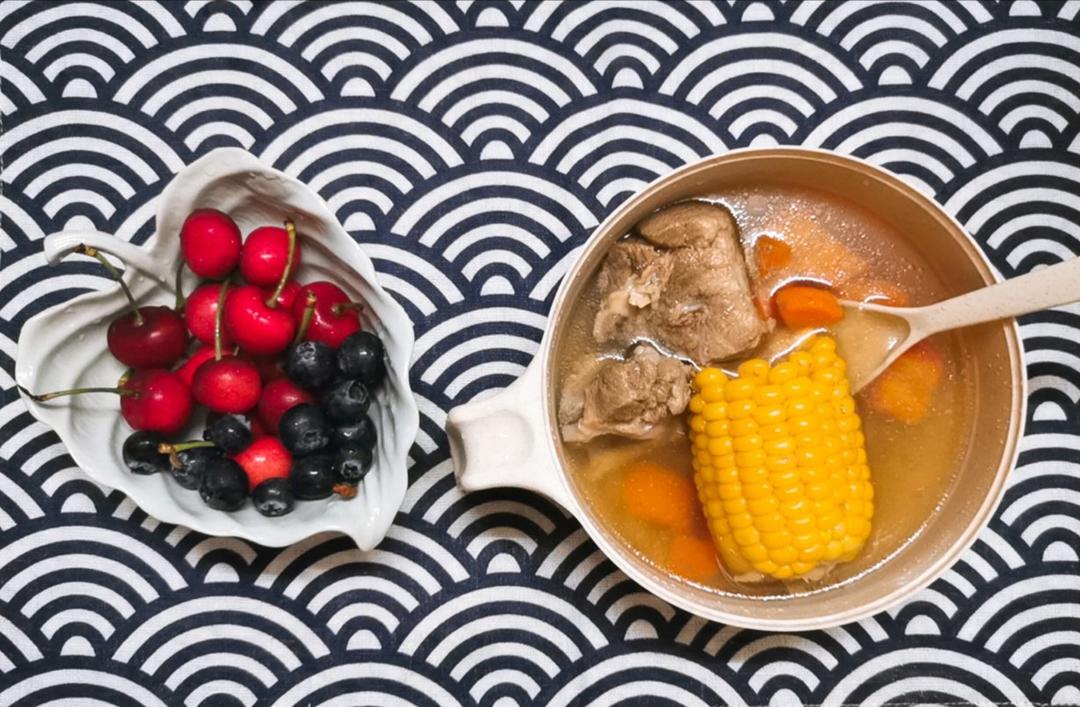 差点忘记发了 樱桃蓝莓+玉米排骨汤