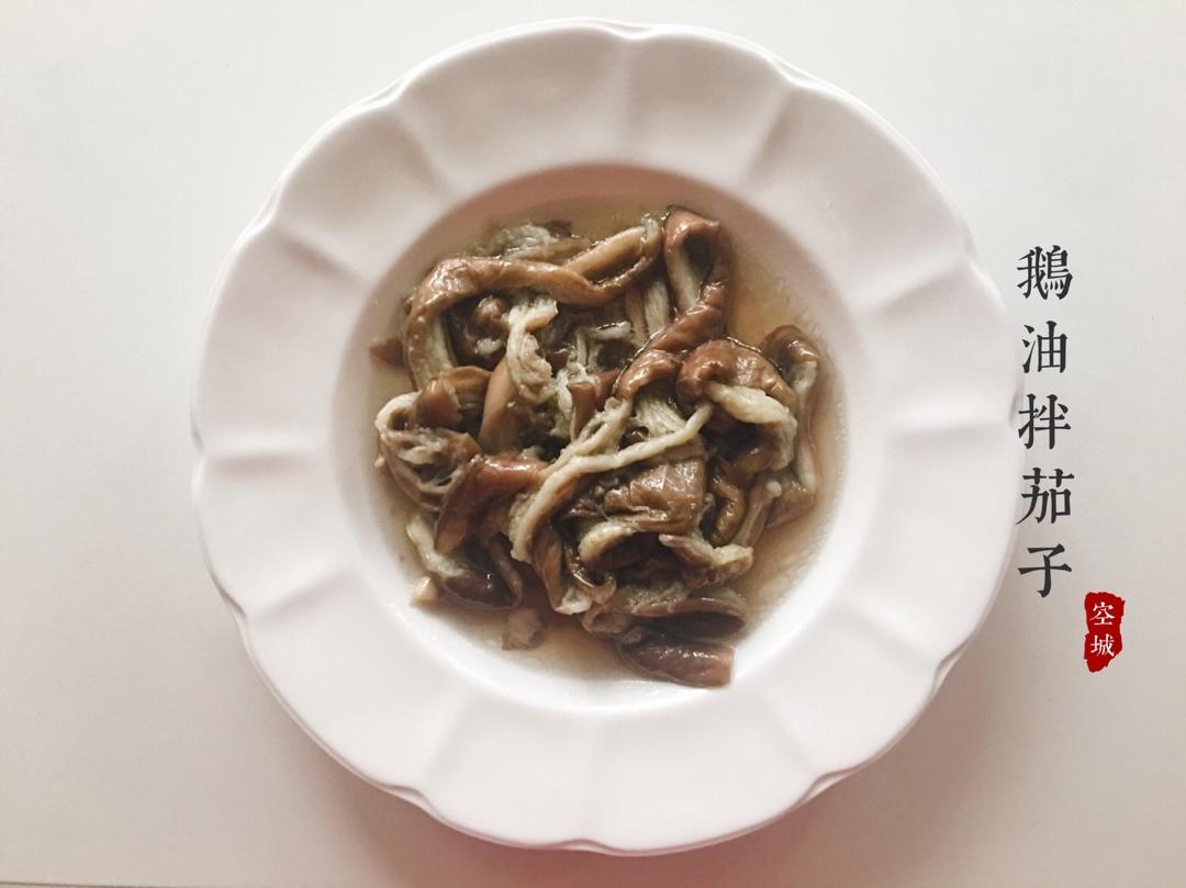 蒸完茄子,将其撕成条状,撒点盐,加点鹅油拌匀,超简单。