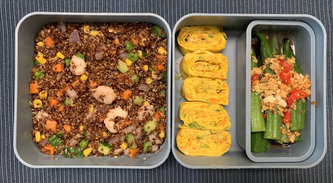 藜麦炒饭+凉拌秋葵+厚蛋烧