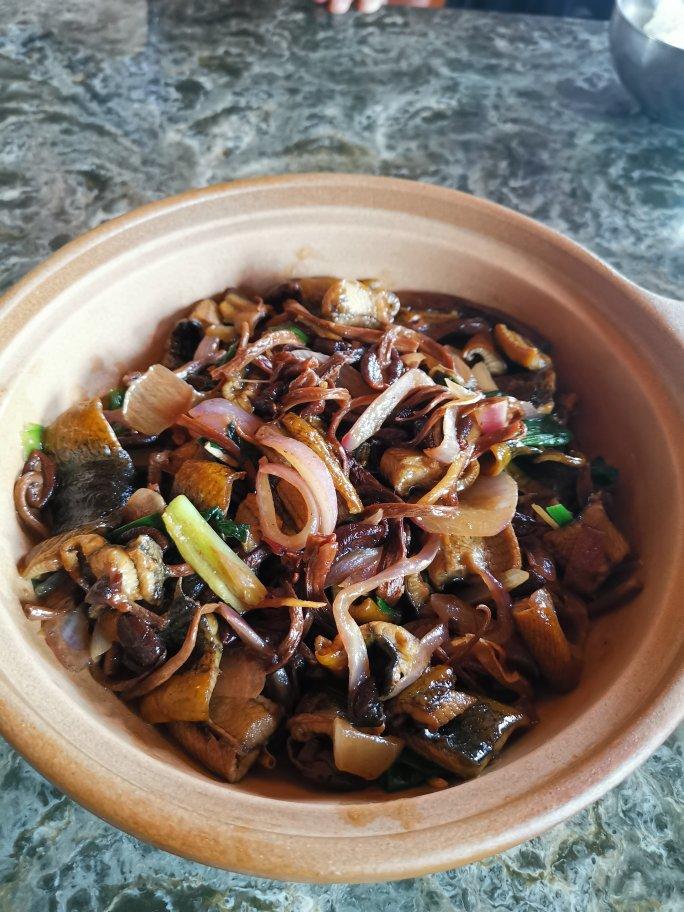 蒜苗茶树菇炒鳝背
