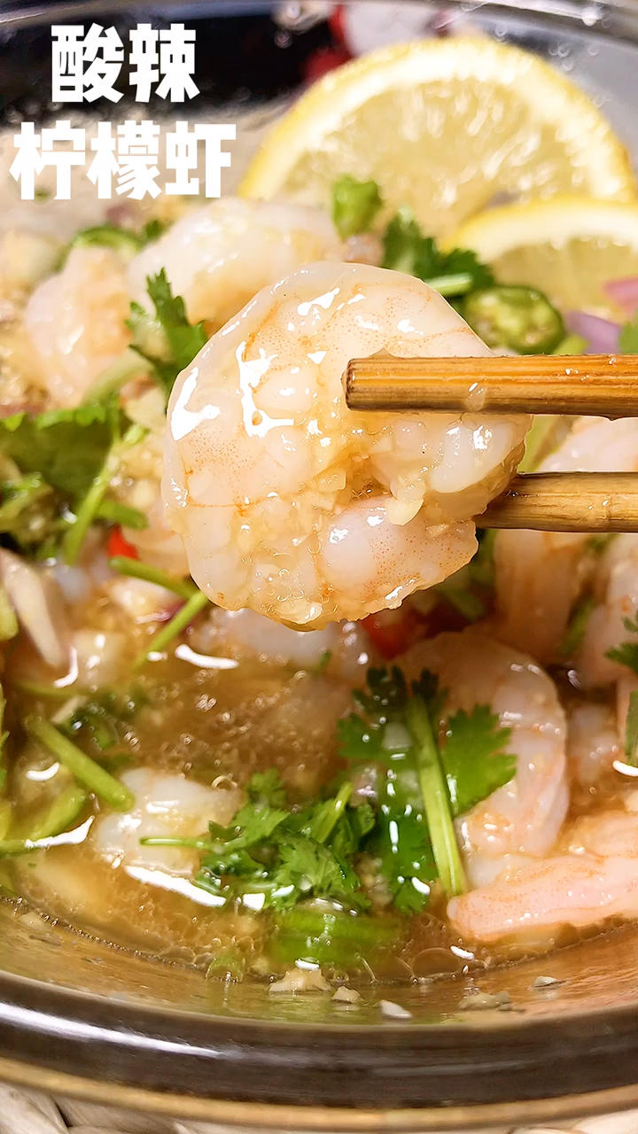 甜甜的阿四 做过 晚餐•2020年6月15日 #视频·食物最诱人的瞬间# #晚餐•2020年6月15日# 柠檬 1个虾仁 300g生抽3勺蚝油2勺香醋2勺芝麻油1勺盐半勺糖半勺大蒜末香菜小米辣线椒 2020-06-15