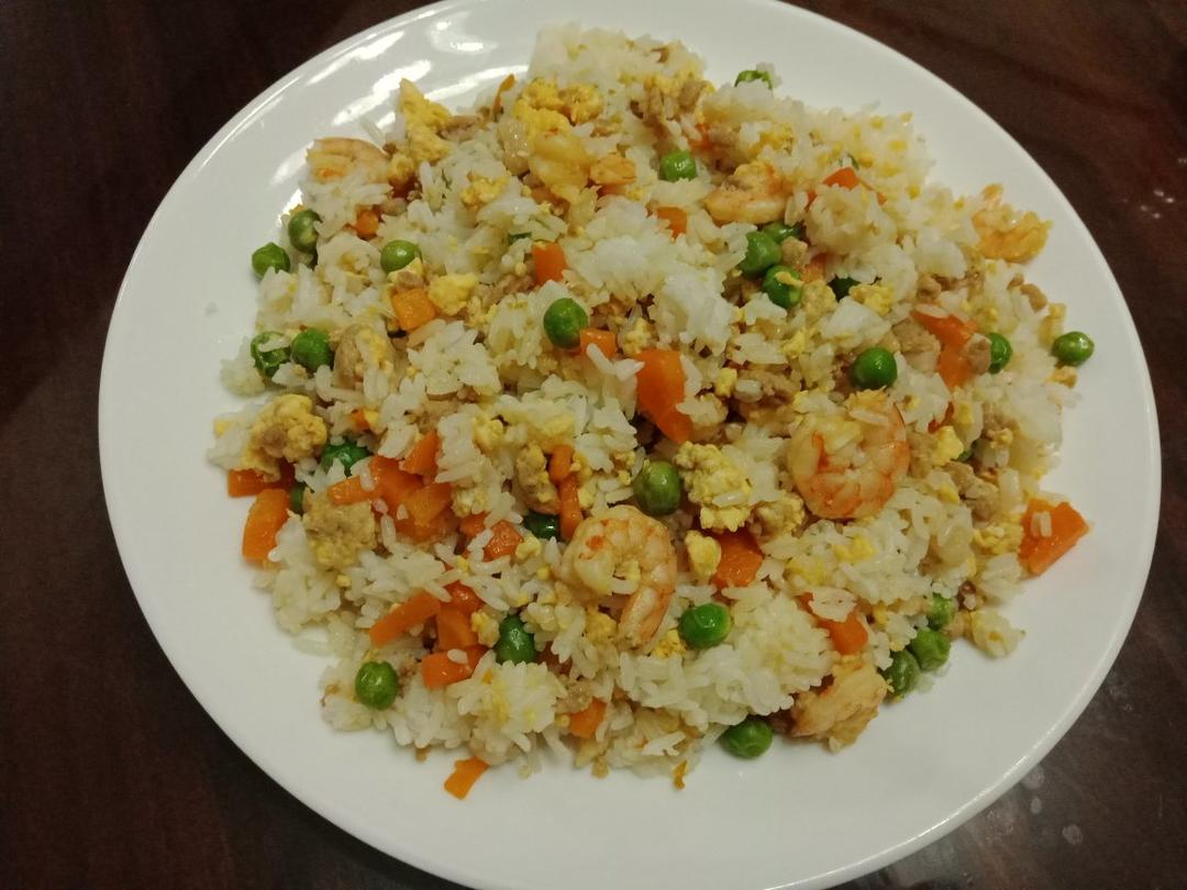 青豆胡萝卜虾仁肉末蛋炒饭,非常好吃