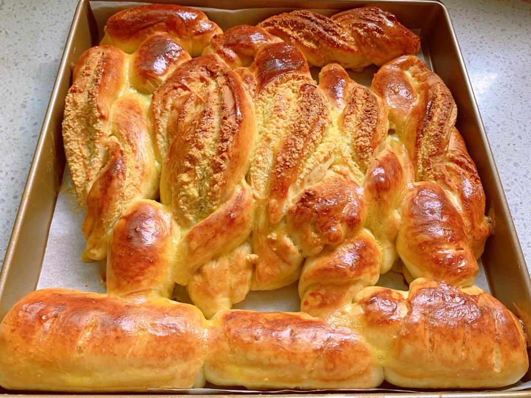 第二次和第三次做啦!用的烤盘烤,有几个加了点椰蓉馅儿