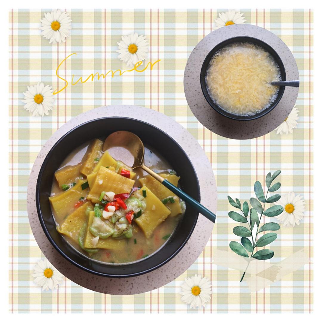 丝瓜煮粿&米汤冲蛋~停水的日子早餐也不能停