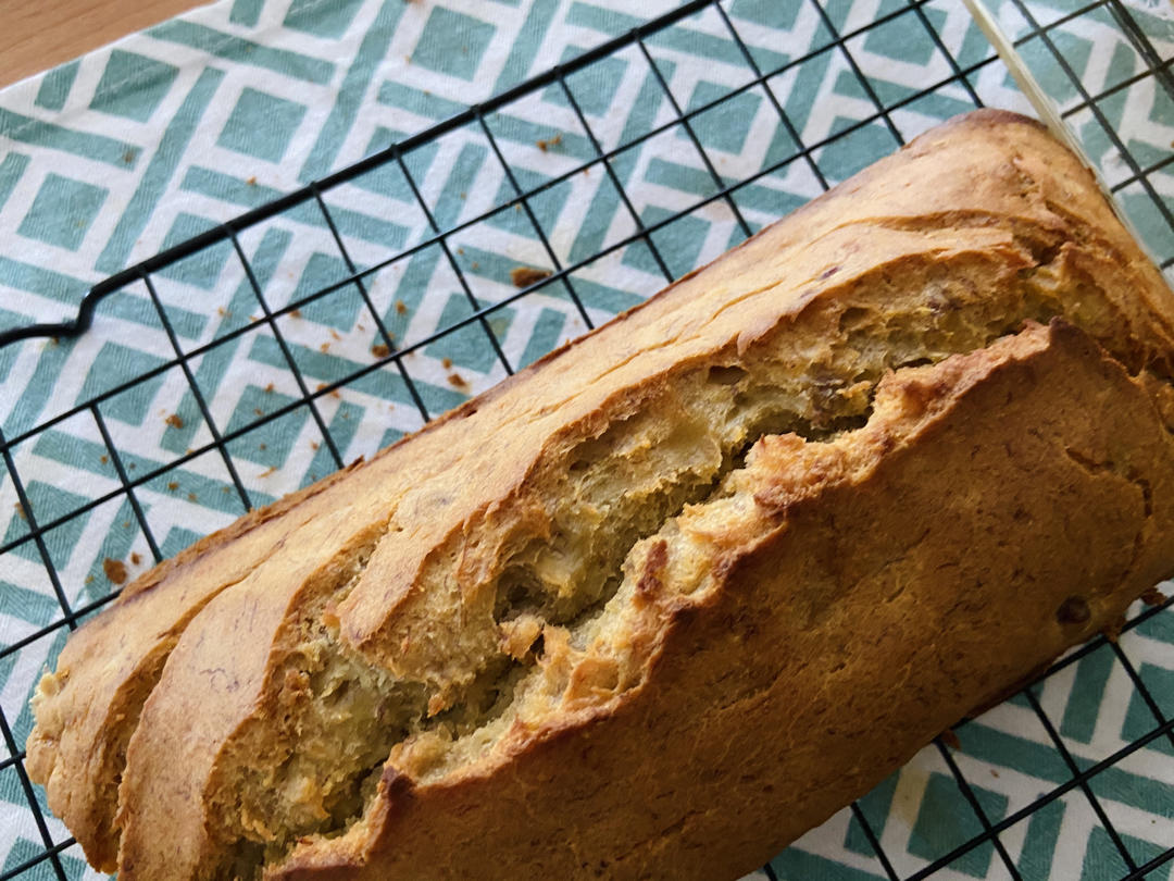 柠檬茶安娜 做过 香蕉核桃蛋糕(低油少糖健康版) 东非大裂谷了,而且里面有点太软了,烤了1小时,用了三根香蕉,没加糖,油用的canola oil 50g,没有小苏打用了6g baking powder。闻着挺香的。#午餐•2020年7月8日# 2020-07-09