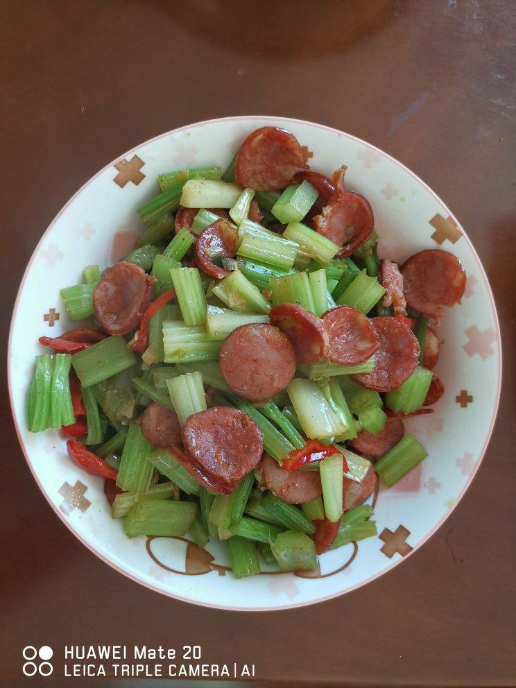 腊肠炒芹菜