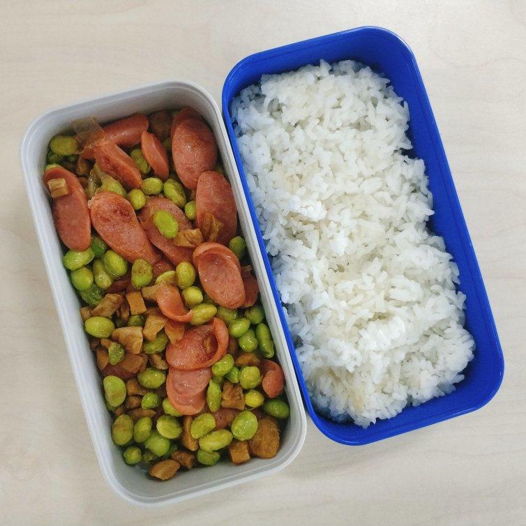 毛毛食记 做过 便当🍱-持续更新 今天中午的便当菜是下饭菜【肠仔炒菜脯毛豆】🥢毛豆焯水30-40秒,热锅热油先炒菜脯和毛豆,最后加入切片的肠仔加盐调味就行了~ #便当# #午餐•2020年7月23日# 2020-07-23