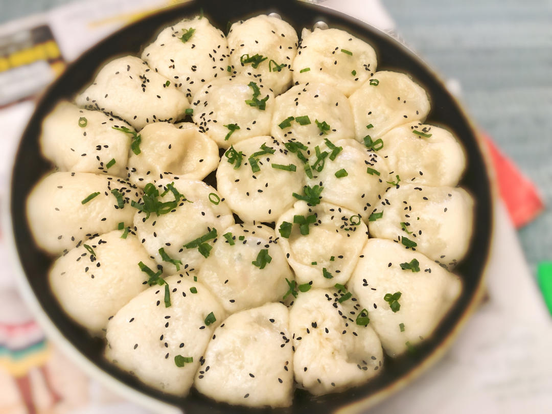 芝麻香葱虾仁生煎包