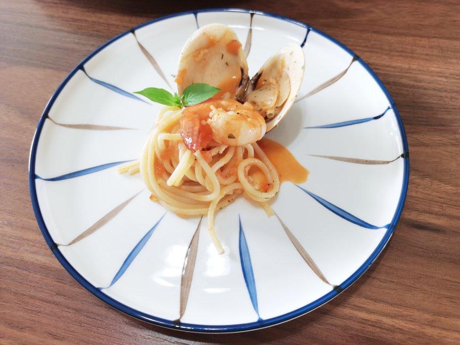 带着罗勒香气的番茄海鲜意面