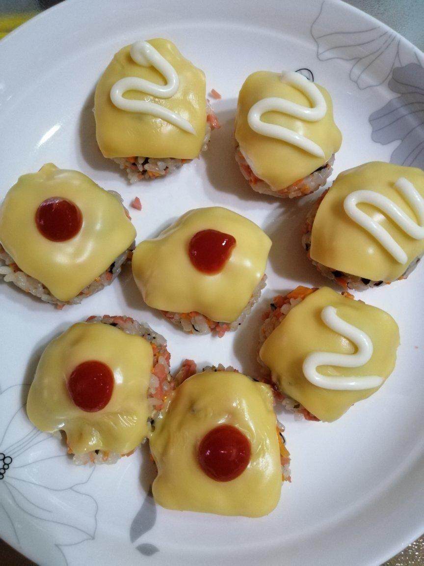 今日晚餐自制芝士饭团,宝贝给我点了个赞,好开心啊
