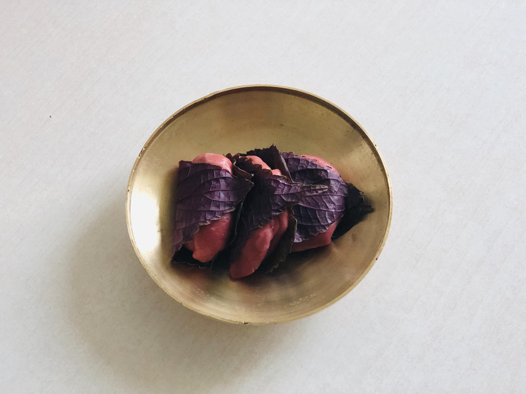 我做出来饼皮太软,偷懒就不擀皮了,直接用紫苏叶抱了一下,不耽误吃。
