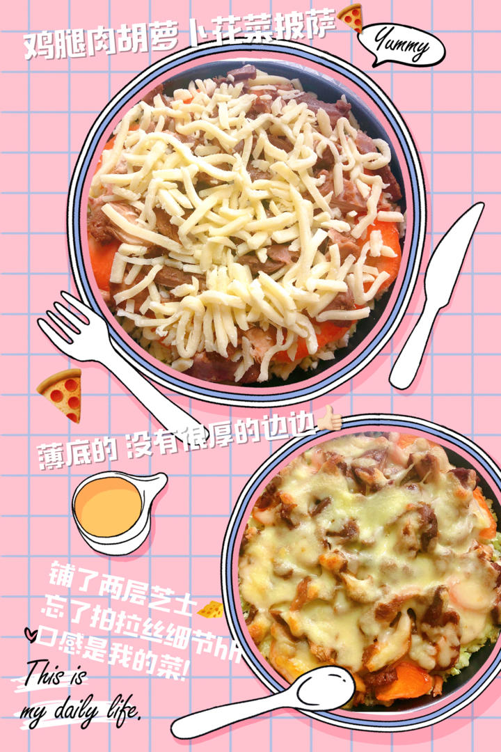 用现有材料瞎做了一个披萨🍕还挺好吃。主要是芝士铺了两层~太满足啦hh