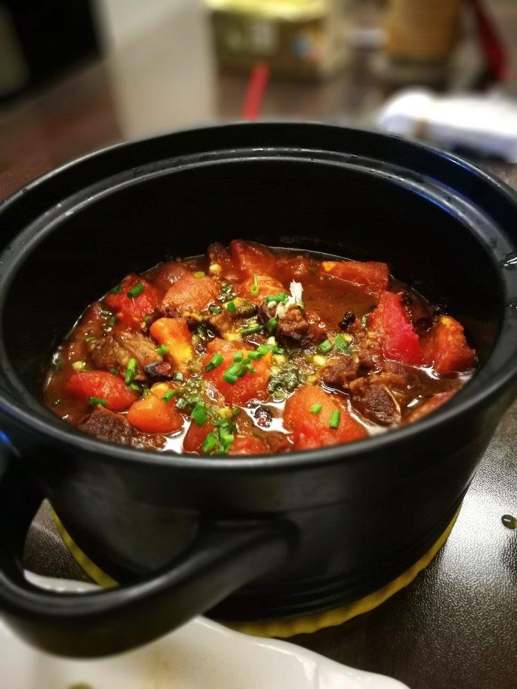 按此方子焖的牛腩,然后加啤酒焖最后放番茄。盛夏消暑开胃菜。今晚晚餐:番茄牛腩+丝瓜炒鸡蛋+龙虾小炒