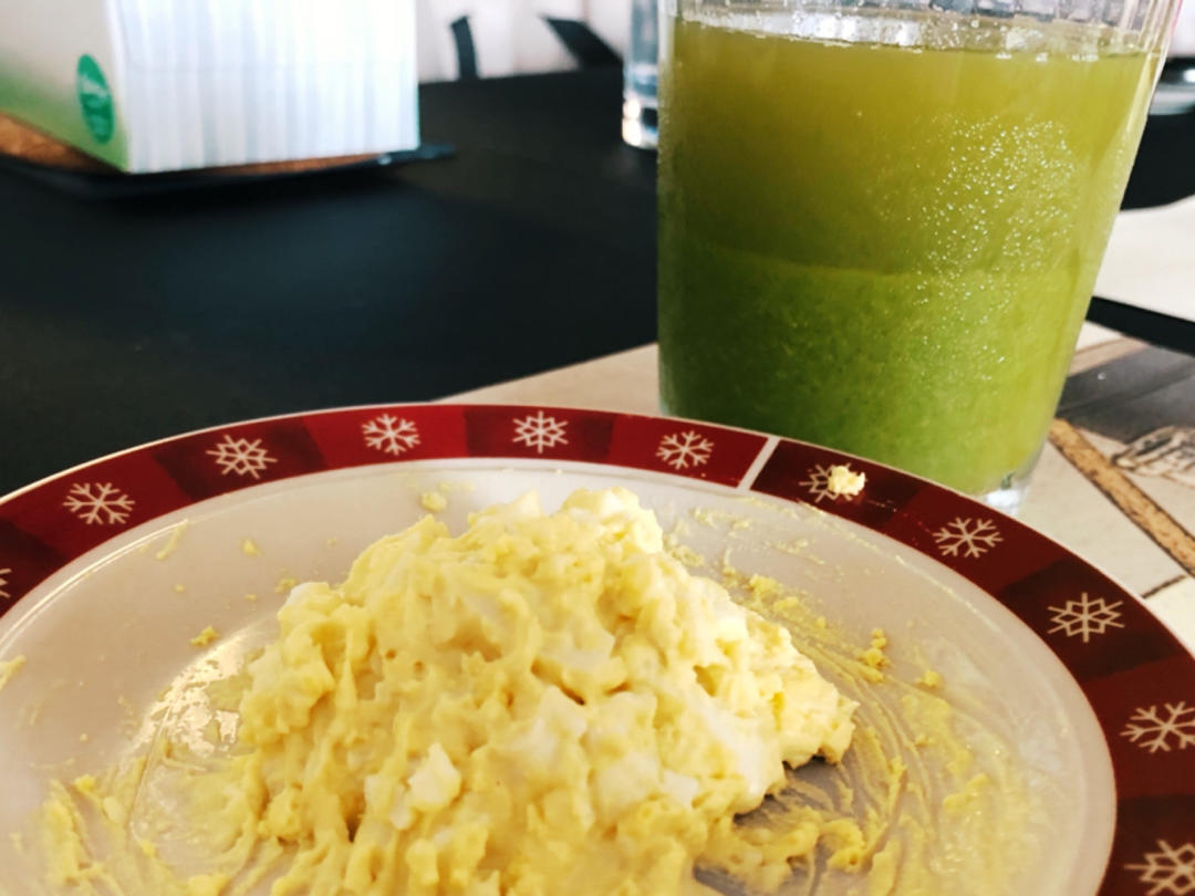 早饭:牛油果美乃滋鸡蛋沙拉+西芹汁;