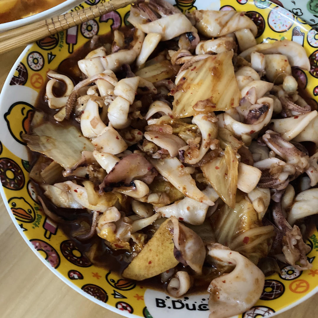 鱿鱼炒泡菜,泡菜炒鱿鱼