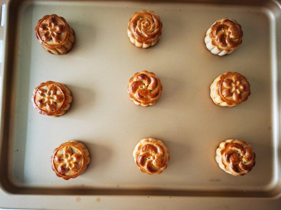 买的睿香的板栗馅,第一次用了深盘烤出来颜色比较深,听水水建议换了浅盘就好多了,放了一夜回油了,饼皮变得柔软,方子太赞啦