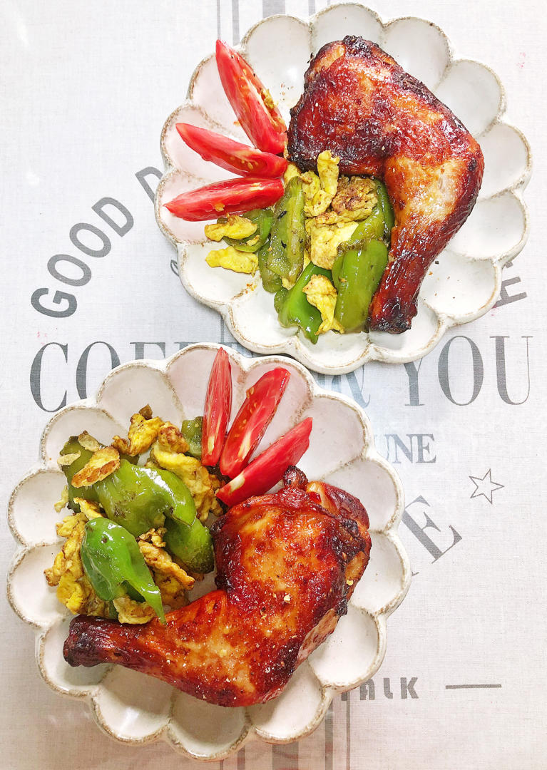 【早餐分享】奥尔良烤鸡腿+青椒炒蛋+酱牛肉+小米藜麦粥~~早安世界[玫瑰][玫瑰]