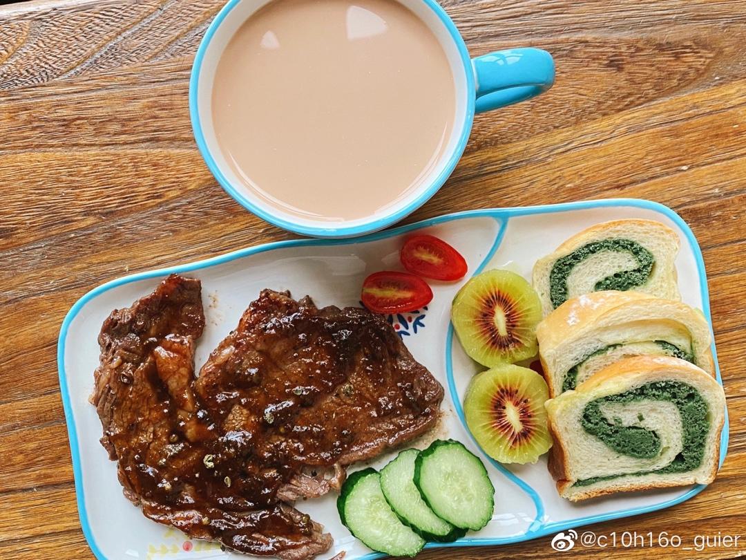 c10h16o 做过 早餐•2020年9月18日 #早餐•2020年9月18日# #我的健身餐# 一人食:黑椒牛排🥩&红心奇异果🥝&抹茶黄油奶酥吐司🍞&大红袍奶茶🥛(在加了N勺植脂末后终于调出了凑凑奶茶店里一样的味道🤫于是决定不试验了,以后还是多买点淡奶调港式喝喝拉倒了) 2020-09-18