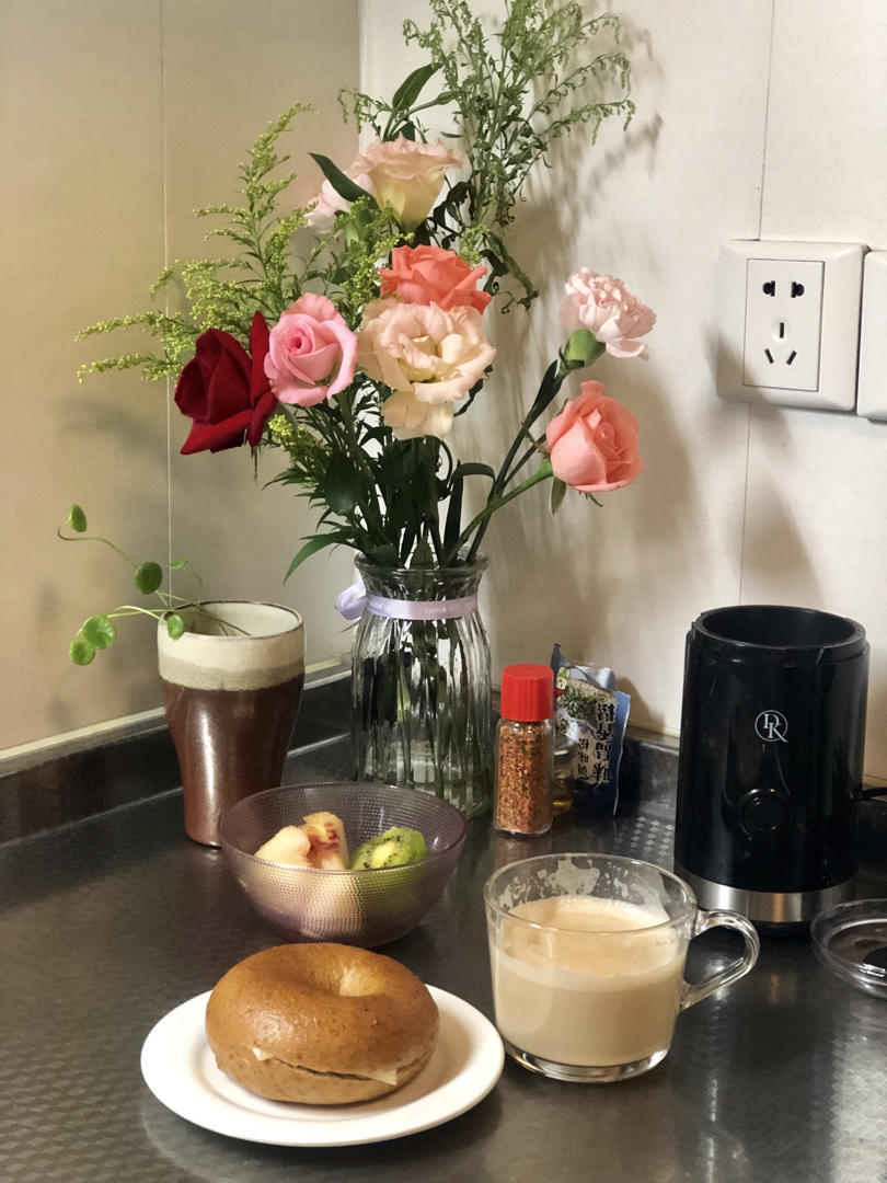 每只猫都是明星2015 做过 2020年09月22日 #早餐•2020年9月22日#我的早餐 🔷贝果🥯(最近超爱面包探店,苏州出来好多日式面包店喜欢盐可颂、碱水面包和贝果)🔷奶咖☕️🔷桃子🍑➕猕猴桃🥝 2020-09-22