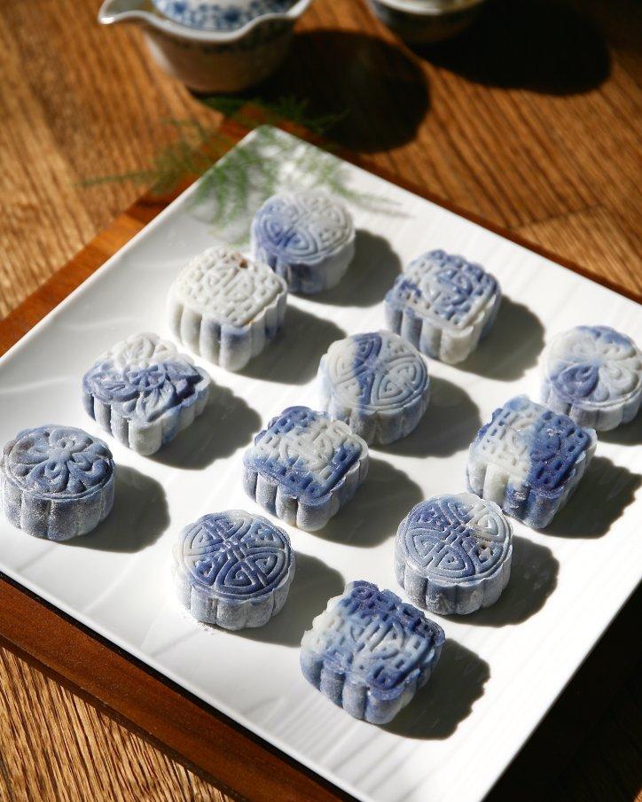 青花瓷巧克力流心冰皮月饼